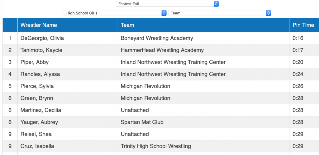 Olivia DeGeorgio and Kaycie Tanimoto had the top 2 fastest falls in the tournament.