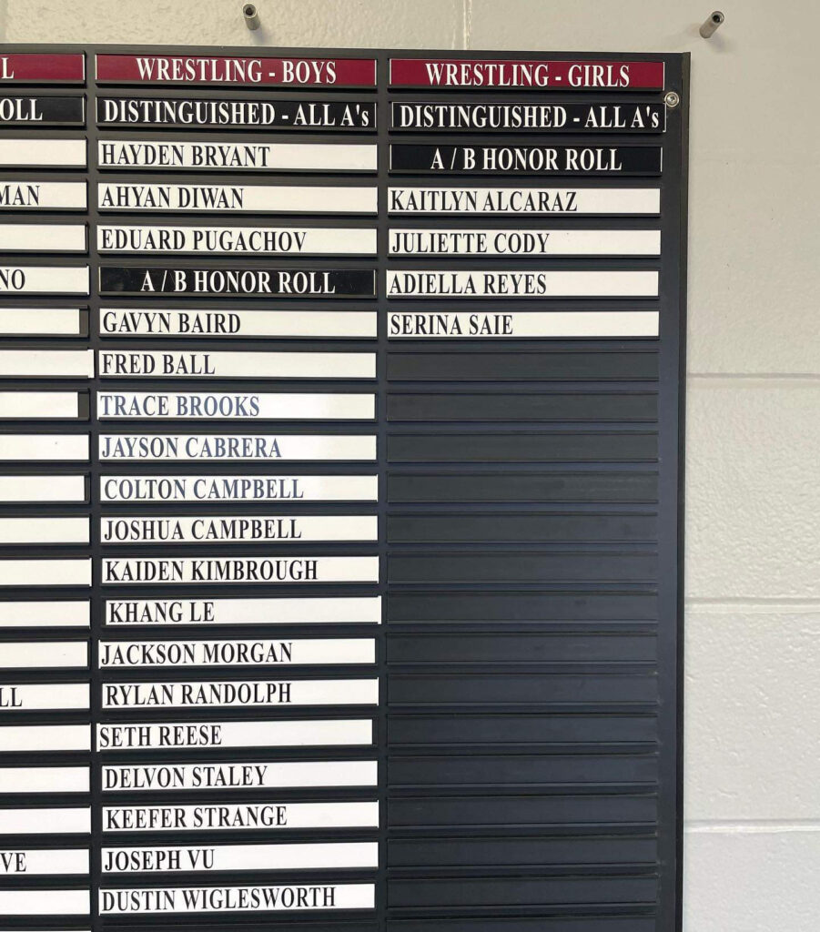 As a matter of fact, outside the gym, the athletic department has created a display board of all student athletes from every sport with their Honor Roll achievement.