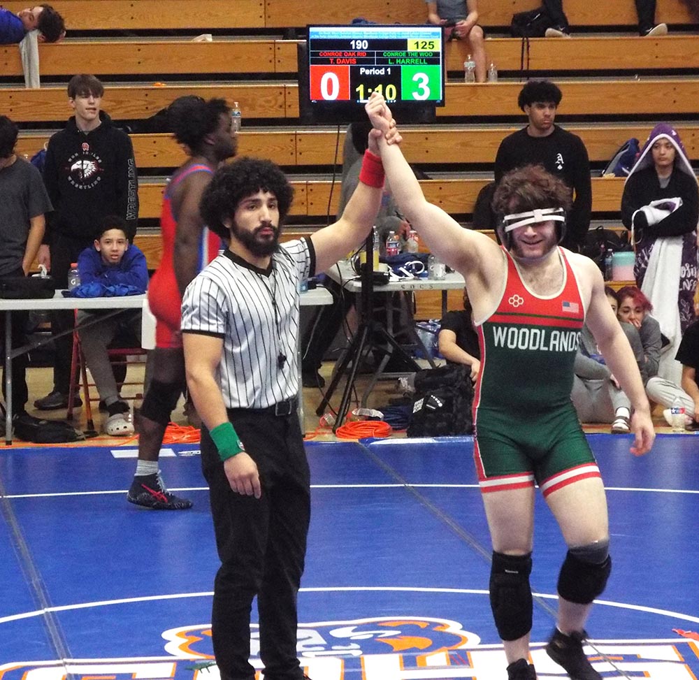 A highly anticipated match between two Top 5 wrestlers was up next. #1 Caio Aron of College Park, whose record was 33-0 coming into this final match. Andrew Huerta, a former teammate of Aronās, who now wrestles for The Woodlands, had a record of 39-1 coming in, as well as a #5 ranking.