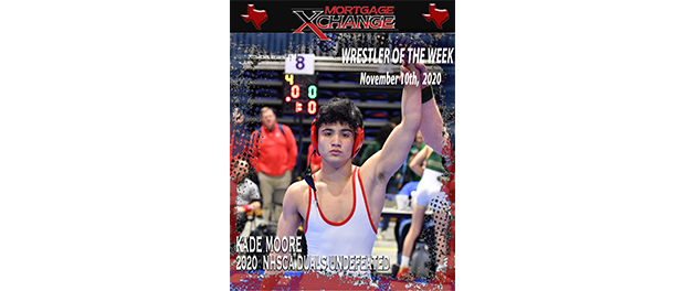 Kade Moore is Mortgage X-Change Wrestler of the Week. Ā Kade Moore traveled with the BestTrained Team out of Allen this past weekend to compete in the NHSCA Duals being held in Ocean City Maryland . Moore help the team sweep the day 1 competition going 3-0 while wrestling up a weight at 132. Ā Day 2 had the BestTrained Team in a yet tougher pool and Moore still was able to go undefeated but this time at his normal weight of 126.
