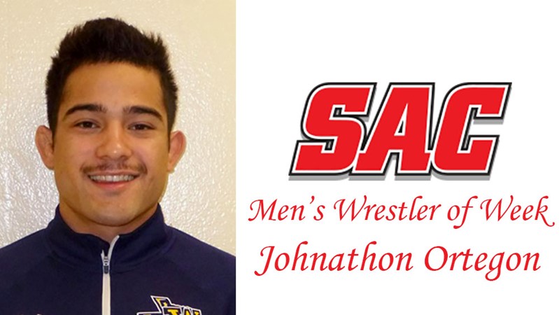 Wayland Baptist wrestler Johnathon Ortegon has been named Sooner Athletic Conference Men’s Wrestler of the Week.
