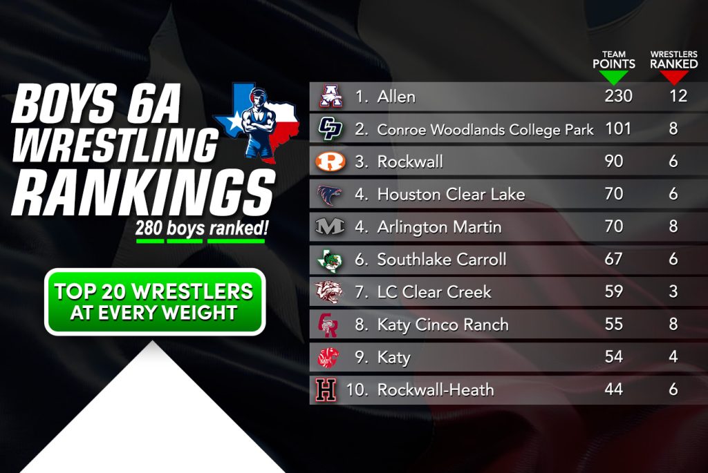 The latest Texas high school wrestling rankings are live! Top 5 individuals in every weight class are 100% FREE for everyone. Full Top 20 ranked wrestlers, + top grade level rankings and pound-for-pound lists are exclusive to Premium members ($9.99/mo or $99.99/year).